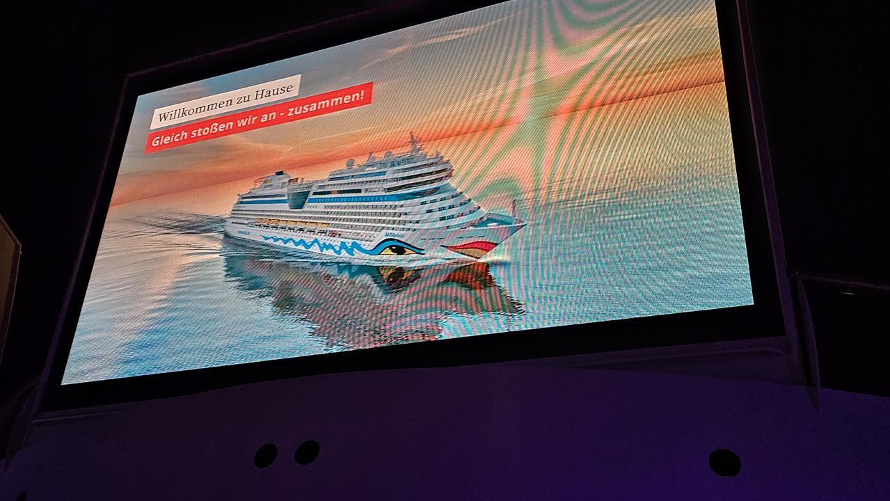 Zur Erinnerung an diesen besonderen Moment lassen wir ein erstes Welcome-Foto machen – der perfekte Auftakt unserer Reise. Zumal wir für die Reise die Foto-Flat gebucht haben: Alle Fotos von der Gangway und auf Partys sind inklusive.