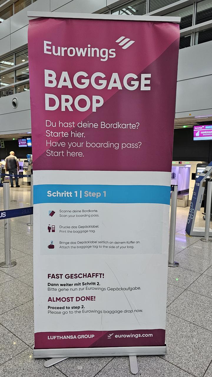 Was ist das? Es gibt gar keine Schlange am Check-In-Schalter von Eurowings. Wir können unser Glück kaum fassen. Doch dann werden wir abgefangen. Wir sollen doch bitte den Self-Check-In nutzen. Okay…. Jetzt erklärt sich, warum es keine Schlange gibt. Die Menschen tümmeln sich vorm Self-Check-In 😉