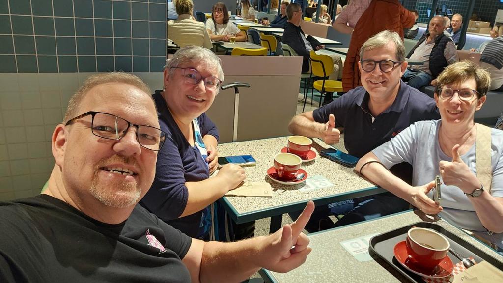 Juli und Greg sind inzwischen auch eingetroffen und weil wir inzwischen Profis im Self-Check-In sind, helfen wir natürlich 🙂 Gemeinsam machen wir uns auf zum Sicherheits-Check, auch dieser funktioniert schnell und reibungslos.