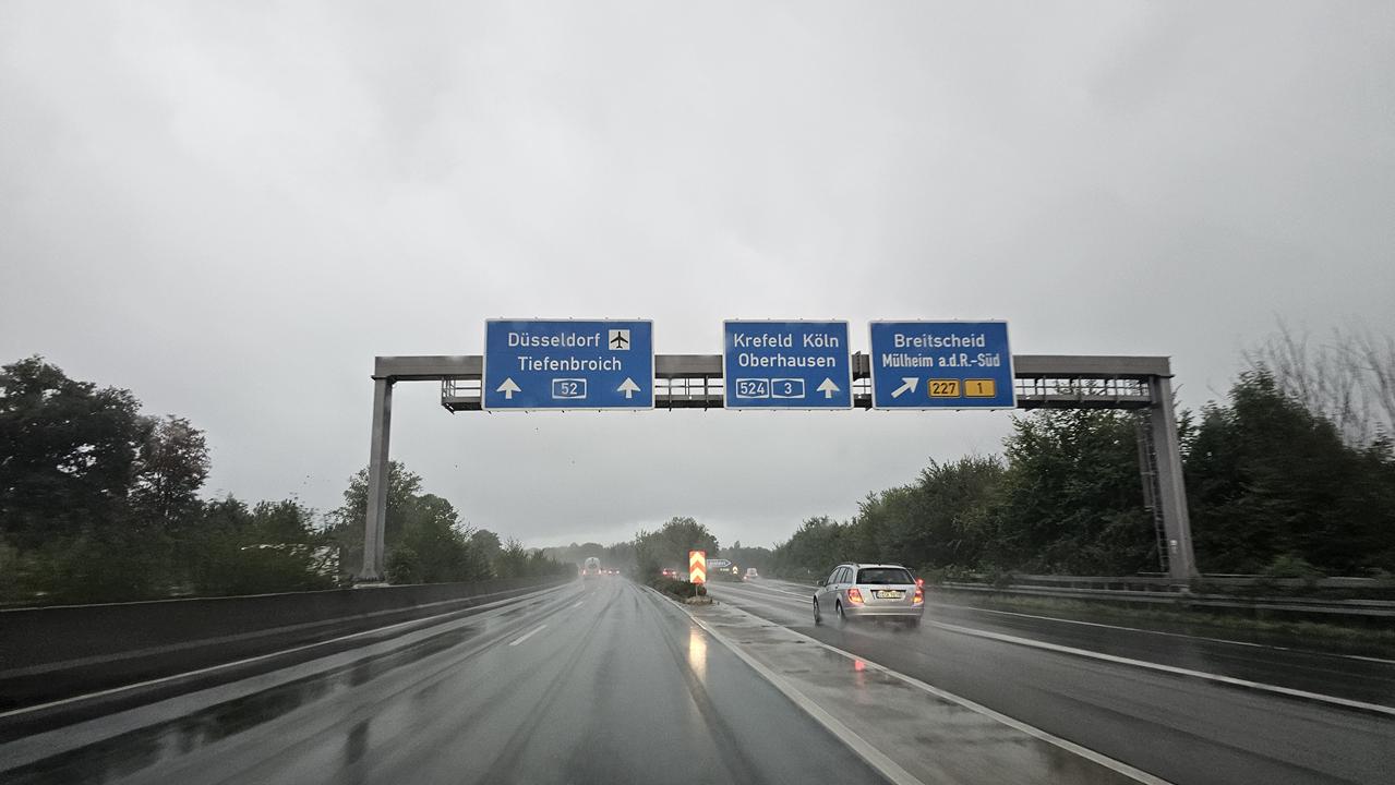Aber erst mal geht’s durch Regen und trübes Wetter nach Düsseldorf zum Flughafen. Um 6:45 Uhr steigen wir ins gepackte Auto und los geht’s.