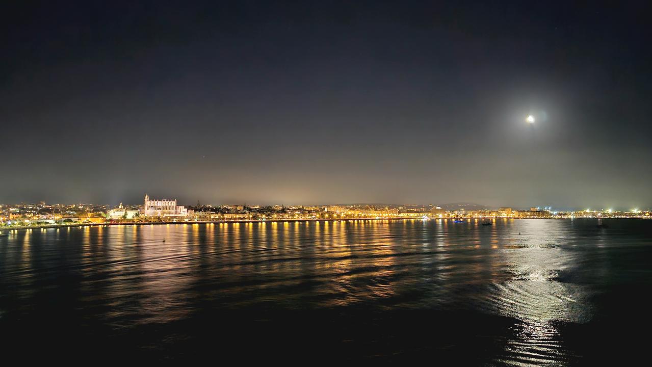 Der riesige Vollmond schwebt über dem beleuchteten Palma und taucht alles in ein mystisches Licht. Ein wunderschöner Anblick!