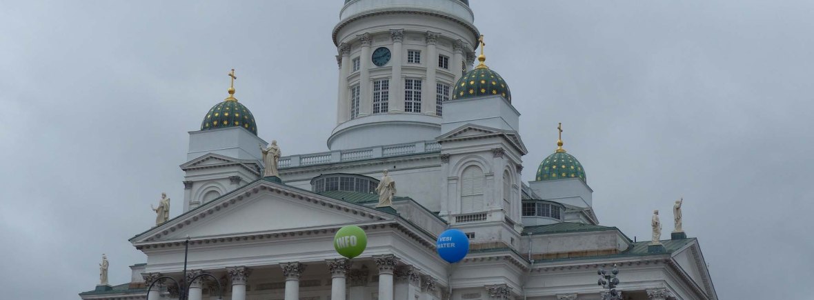 Es regnet immer wieder. Mal mehr, mal weniger. Wir brechen den Rundgang ab und laufen zurück zur Fähranlagestelle und fahren früher als geplant zurück nach Helsinki. Wir sind pudelnass, aber wir genießen trotzdem die Fahrt durch die Schären und den Blick auf die Skyline von Helsinki. Weithin sichtbar thront über der Stadt der weiße Dom – das Wahrzeichen von Helsinki.