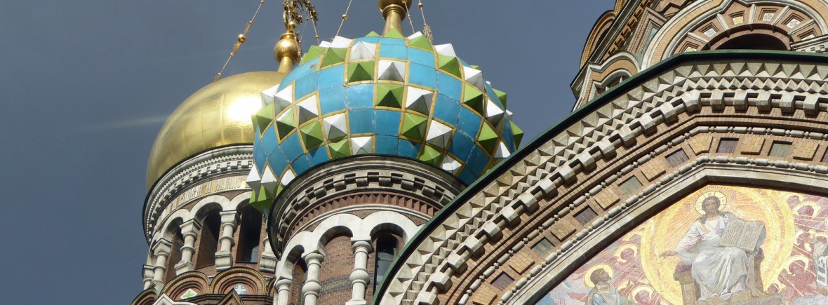 Es ziehen dunkle Wolken auf. Plötzlich öffnet der Himmel seine Schleusen und wir geraten in einen heftigen Regenguss. Wir retten uns in einen Hauseingang und warten einfach ein paar Minuten. Den wie sagt Eugenia: „Wenn Dir das Wetter in Sankt Petersburg nicht gefällt – warte einfach 10 Minuten!“ Und sie hat Recht. Kurz danach hört es auf zu regnen und weiter geht’s …
