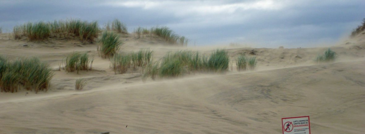 Wir halten auf einem kleinen Parkplatz, an dem unsere Wanderung zu der Düne beginnt. Die Tote oder auch Graue Düne ist eine Ansammlung sandverwehter Hügel mit Gruben und Höhlungen. Diese Düne ist zugleich auch die längste Düne Litauens und birgt in sich einige der traurigsten Begebenheiten dieser Gegend. Zwischen 1675 und 1854 wurden hier vier Dörfer komplett begraben und befinden sich heute tief unter dem Sand. Die damalige Geschwindigkeit der Düne soll 0,5 bis 1 m pro Jahr betragen haben und die Menschen haben lange Zeit erfolglos mit ihr gekämpft.