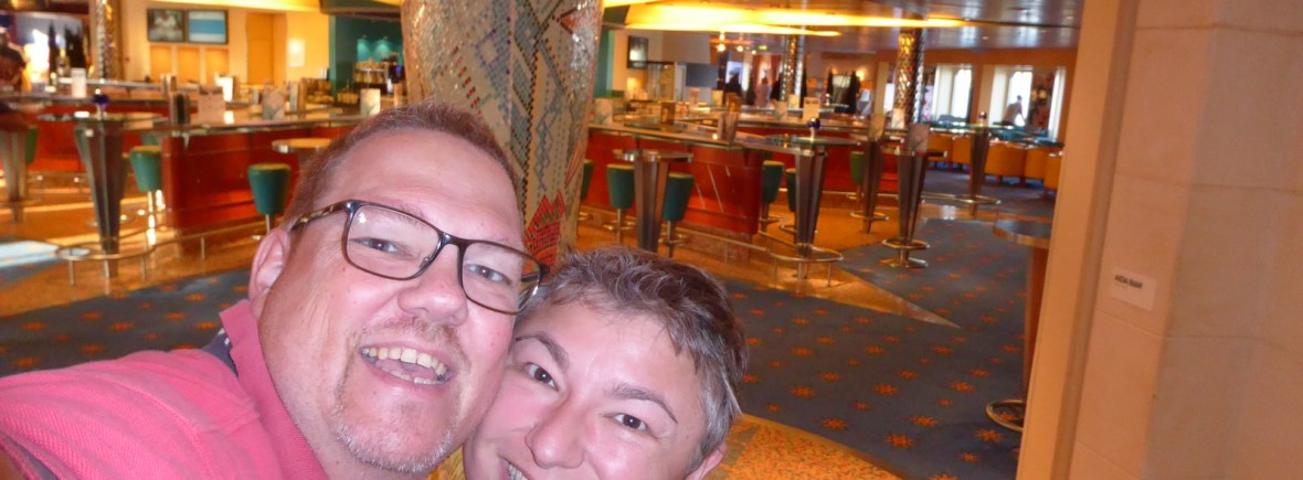 Langweilig wird uns nicht. Zumal wir heute einen tollen Platz in der AIDA Bar ergattert haben. Direkt neben dem Durchgang zu den Shops und zum Restaurant 🙂 Es kommen immer wieder Bekannte vorbei, die wir auf der Tour kennen gelernt haben. Es gibt viel zu erzählen und es macht Spaß einfach drauf los zu quatschen. Oh Mann, kennen wir hier viele Leute 🙂 Der Nachmittag geht rum wie im Flug.