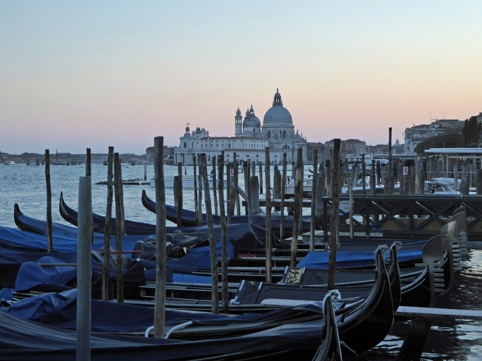 Venedig-Gondeln-Santa_Maria_della_Salute-Abenddaemmerung-2