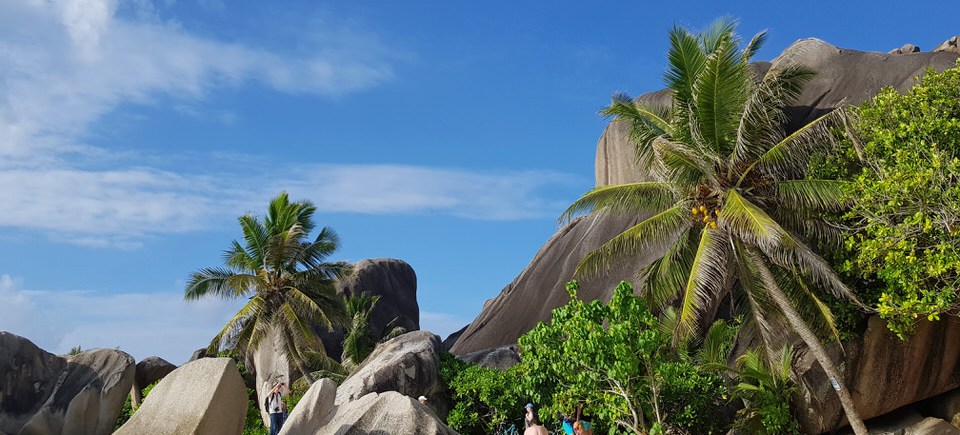 Unser heutiger Tag: 10-stündiger AIDA-Ausflug POV11 „Perlen der Seychellen“. Es geht mit der Fähre nach Praslin mit dem Naturpark Vallee de Mai und dem Strand Anse Lazio. Und weiter nach La Digue zum berühmten Strand Anse Source d’Argent 🙂