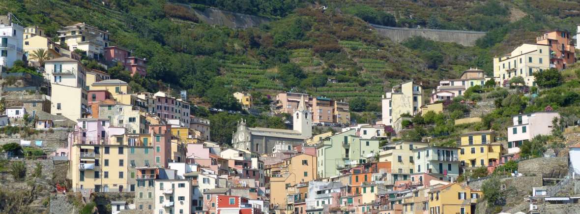 Heute wollen wir auf eigene Faust zu den Cinque Terre („Fünf Ortschaften“). Das sind fünf Dörfer an der Italienischen Riviera, die sich an einer zum Teil steil ins Meer abfallende Küste entlang reihen. Vier der fünf Ortschaften liegen unmittelbar am Wasser. Lediglich einer dieser fünf Ort – nämlich Corniglia – liegt auf einem Felsvorsprung rund 100 Meter über dem Meer. Die Region zählt etwa 7000 Einwohner und ist als Nationalpark geschützt, in dem nichts gebaut oder verändert werden darf. Im Jahr 1997 wurden die Cinque Terre zusammen mit Portovenere zum UNESCO-Weltkulturerbe erklärt.