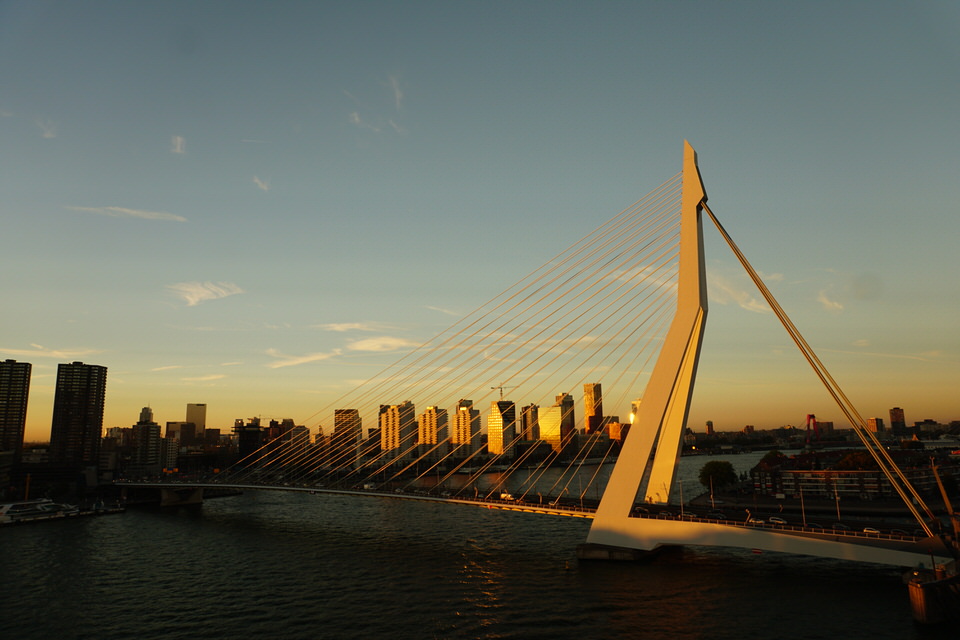 Rotterdam-Skyline-Erasmusbruecke-am_Abend-3