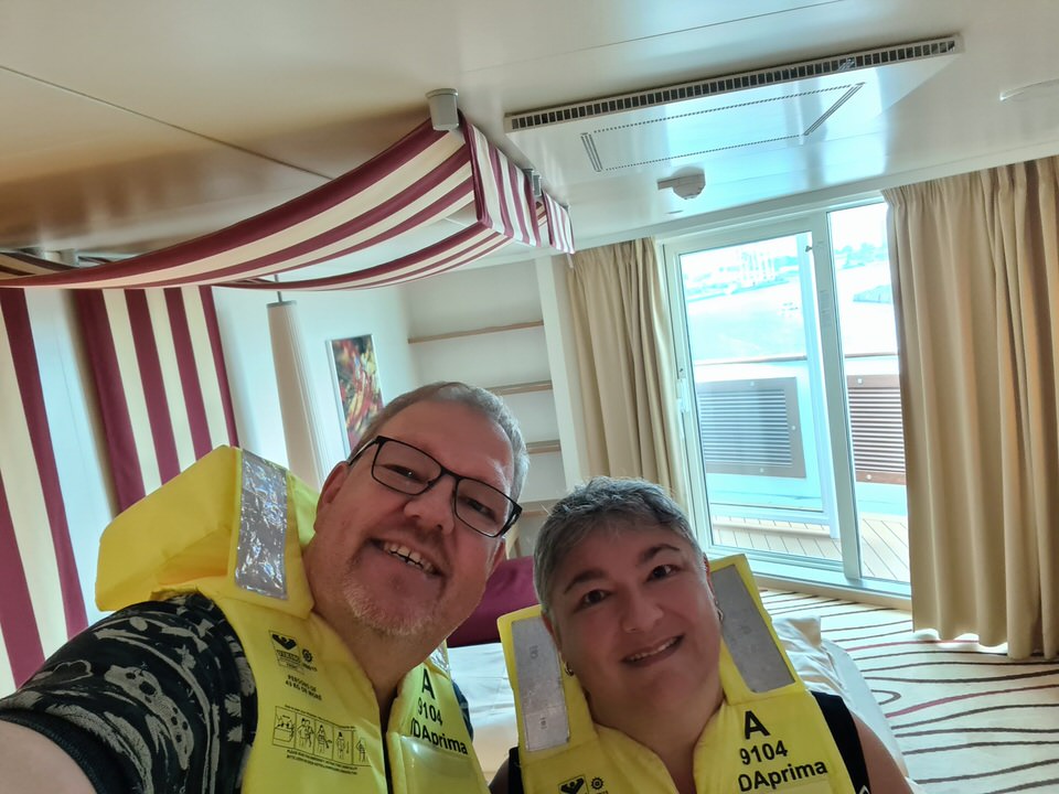 - Bord-Check In: Pässe zeigen, Sicherheits-Foto machen lassen und hören, ob die Kabine schon bezugsfertig ist – bei uns: JAAAA!