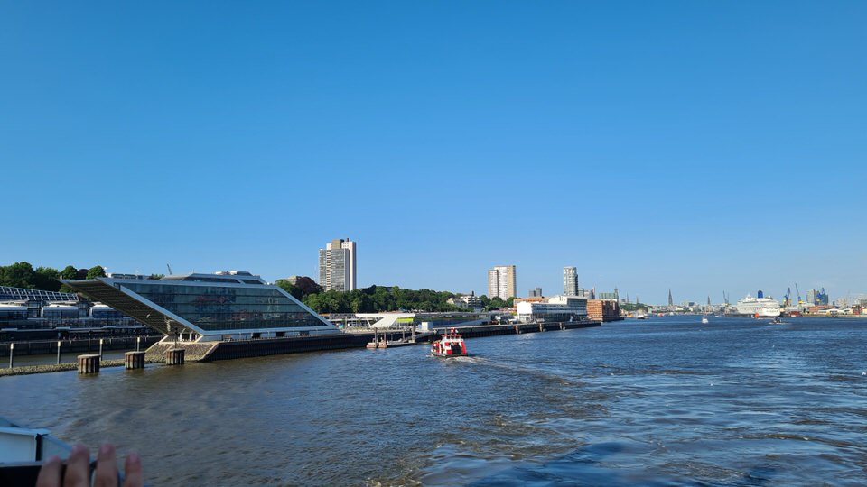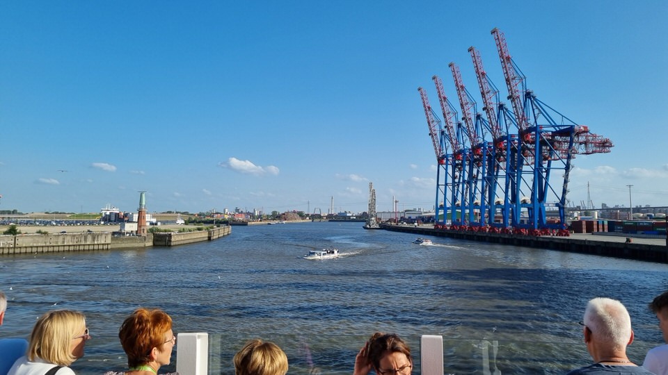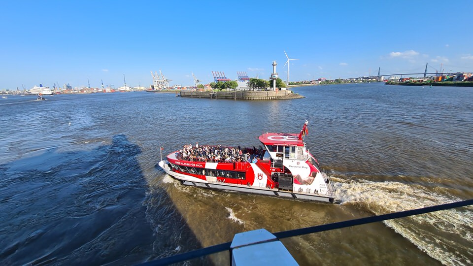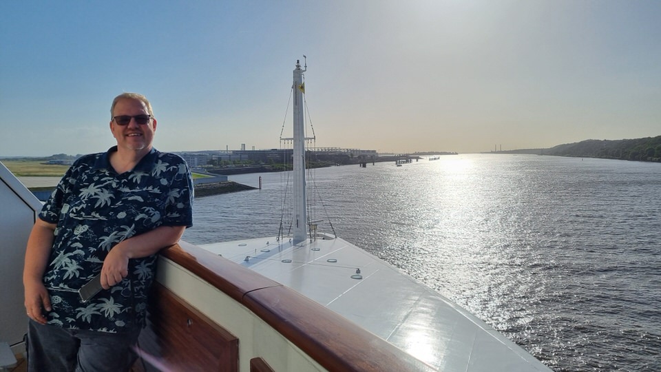 Wir suchen uns ein nettes Plätzchen auf Deck und genießen die warme Hamburger Sonne. Das Wetter wird in Norwegen nicht so dolle werden. Die Wetterprognose verheißt Regen und zwischen 12 und 15 Grad. Aber wir sind von Grund auf Optimisten, sind auf alles vorbereitet und nehmen es einfach wie es kommt 🙂