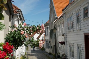 Norwegen-Stavanger-Gamle_Stavanger-Altstadt-weisse_Holzhaeuser-Blumen-12