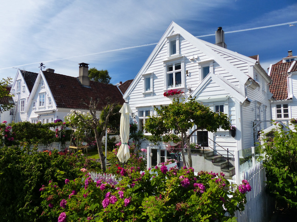 Norwegen-Stavanger-Gamle_Stavanger-Altstadt-weisse_Holzhaeuser-Blumen-9