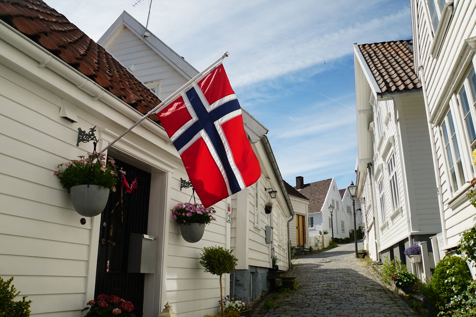 Norwegen-Stavanger-Gamle_Stavanger-Altstadt-weisse_Holzhaeuser-Flagge-15