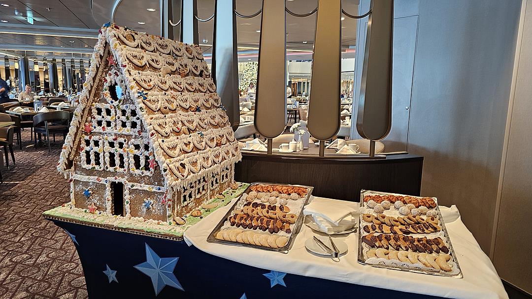 Guten Morgen aus Dubai! Wir starten den Tag mit einem guten Frühstück. Überall auf dem Schiff steht wunderschöne Weihnachtsdeko und auch Plätzchen zum Schnabulieren, es geht schließlich auf Weihnachten zu 🙂 So schön!