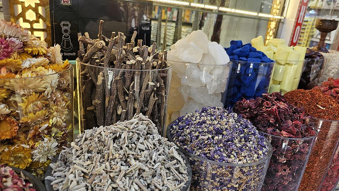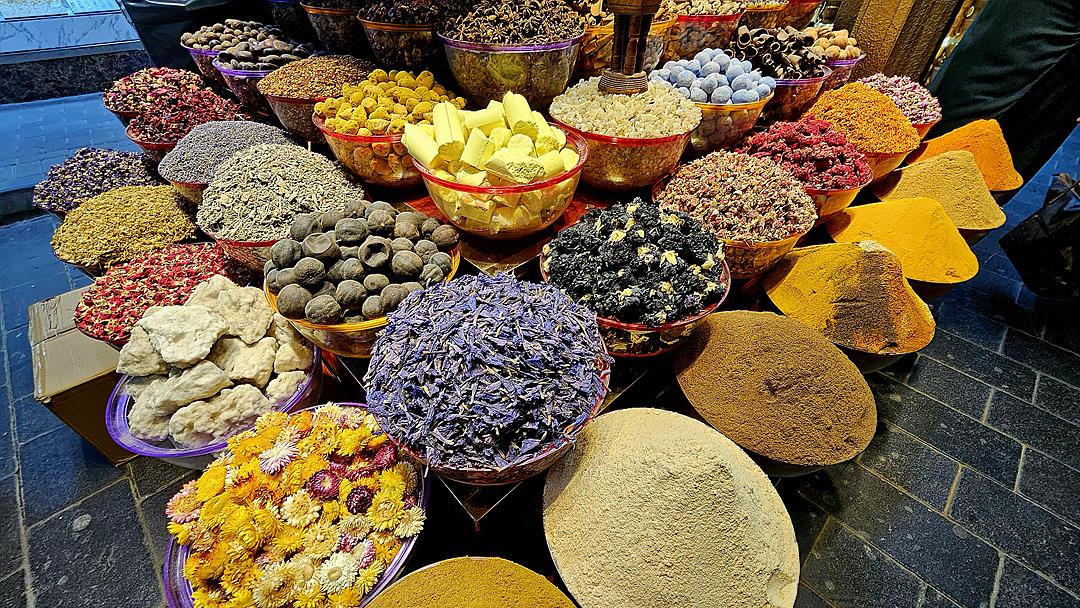 Am anderen Creek-Ufer erreichen wir Deira, das vor allem bekannt ist für seine beiden traditionellen Souks ist. Direkt auf der gegenüberliegenden Straßenseite des Piers Deira Old Souq empfängt uns der berühmte Gewürzsouk mit seinen vielen, exotischen Gerüchen.