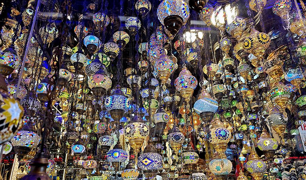 Dann erreichen wir den Gewürzsouk. Gewürze aus aller Welt, verpackt in übergroße Tüten verströmen betörende exotische Gerüche. Aber es werden nicht nur Gewürze, sondern auch Schokolade, Tees, Nüsse, Weihrauch, Shishas, Obst und Gemüse angeboten. Überall hören wir, wie um die Ware gefeilscht wird. Leidenschaftlich ringen die Geschäftsleute und Kunden um den besten Preis.