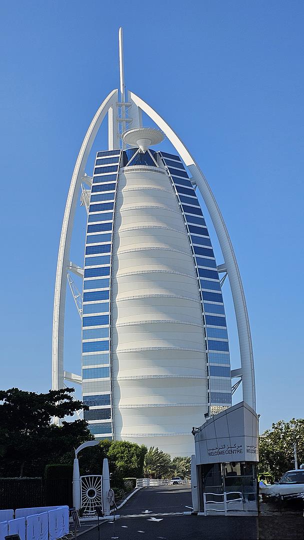Das segelförmige Gebäude ist 321 Meter hoch und steht auf einer eigenen Insel. Die Hotelgäste haben einen sagenhaften Aussicht auf den Arabischen Golf.