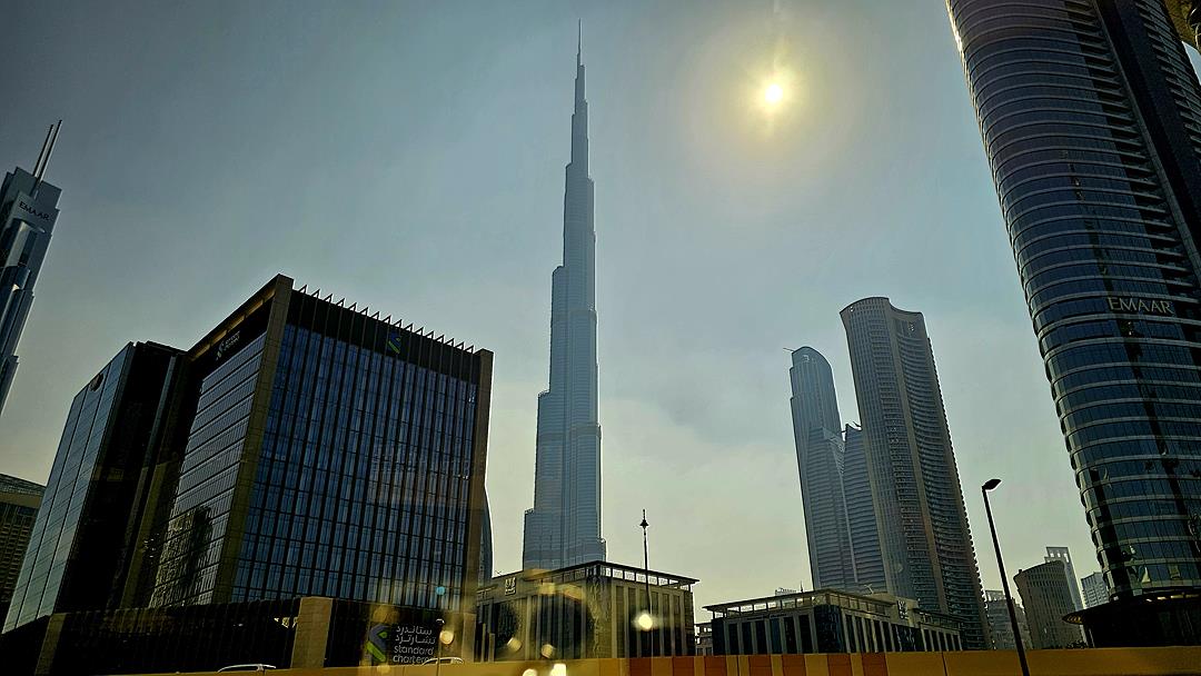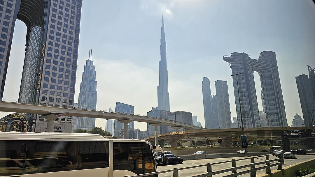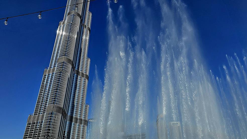 Nach diesem besonderen Erlebnis im historischen Dubai geht’s Richtung Downtown, zum Burj Khalifa. Dem größten Gebäude der Welt. Aber erst einmal fahren wir rund 20 Minuten, vorbei am größten Bilderrahmen der Welt, the Frame. Und auch der Rest der Stadt wandelt sich: Von historischen alten Gebäuden zu topmodernen Hochhäusern.