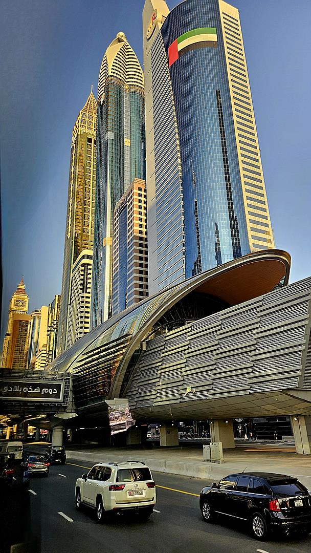 Das war der letzte Stopp unserer Tour und wir fahren wieder Richtung Hafen Port Rashid. Zurück geht’s über die Hauptverkehrsader von Dubai, über die Sheikh Zayed Road. Diese Hauptstraße ist sage und schreibe 47 Kilometer lang und hat 6 Fahrspuren je Richtung. Es geht vorbei an einer beeindruckenden Anzahl an Sehenswürdigkeiten und Hochhäusern.