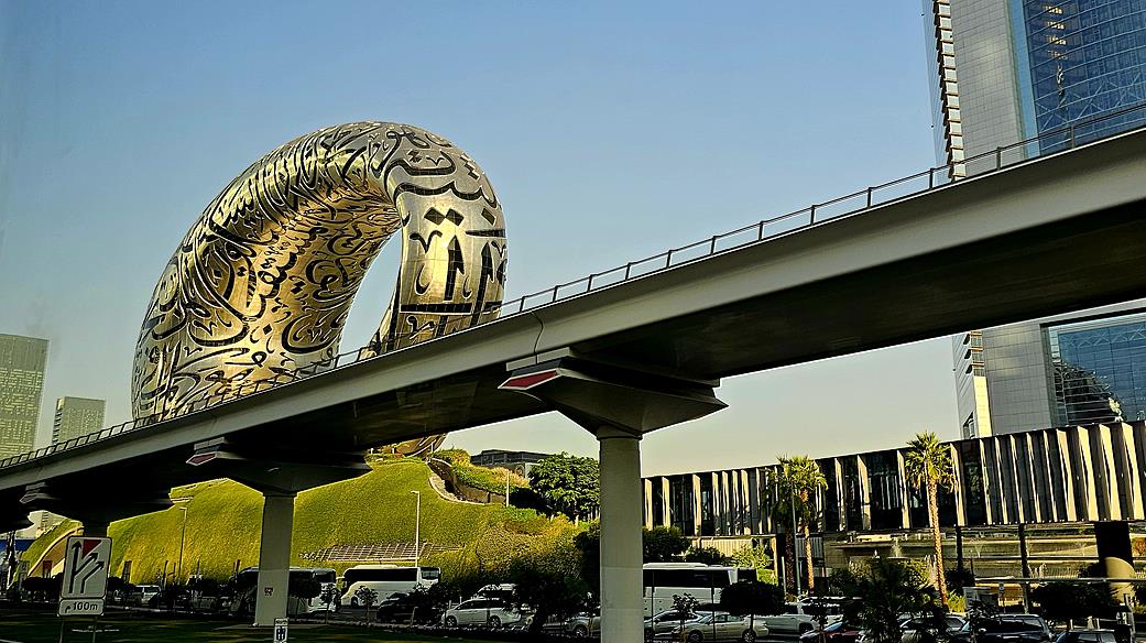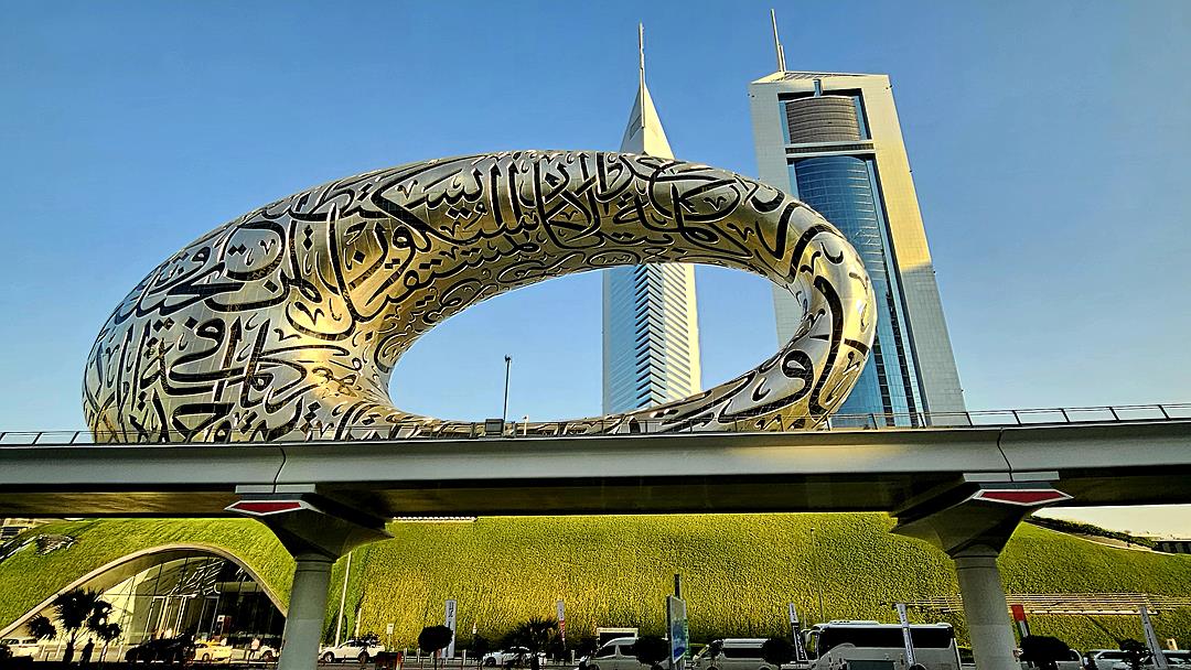 Auf der Fahrt erhaschen wir einen guten Blick auf eines der schönsten Gebäude der Erde, dem Museum of the Future. Einfach ein tolles Fotomotiv!