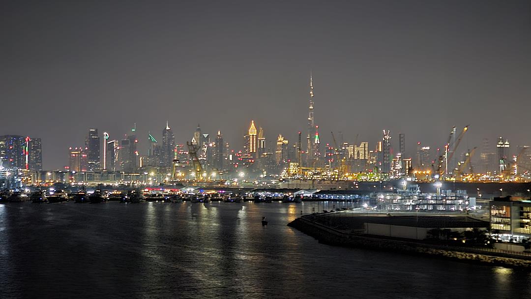 Um 22 Uhr heißt es Leinen los, vorbei an der wunderschön beleuchteten Skyline von Dubai. Der Anblick ist fantastisch. Gemächlich gleiten wir an der Küste entlang, die Skyline wird immer kleiner, wir fahren aufs weite Meer hinaus in die Nacht.