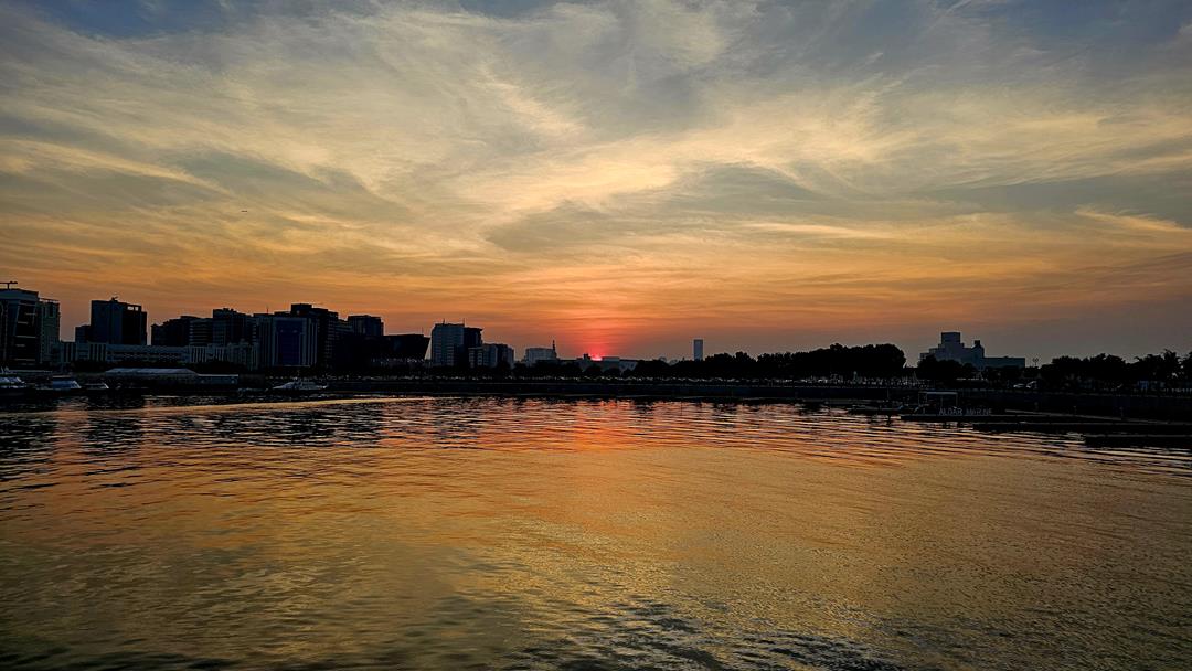 Die untergehende Sonne taucht alles in ein warmes goldenes Licht. Wir schippern in der Bucht von Doha die Küste entlang und nehmen Kurs auf The Pearl. Die Skyline von West Bay kommt immer näher, das Farbenspiel der Sonne ist unglaublich.