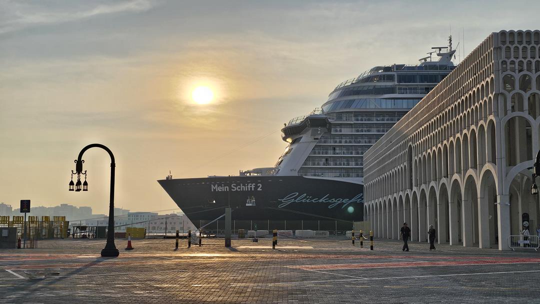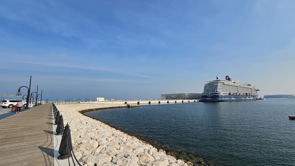 Hier gibt es eine schöne Promenade mit Blick auf das Kreuzfahrtterminal und Mein Schiff. Das ist unser erstes Ziel.
