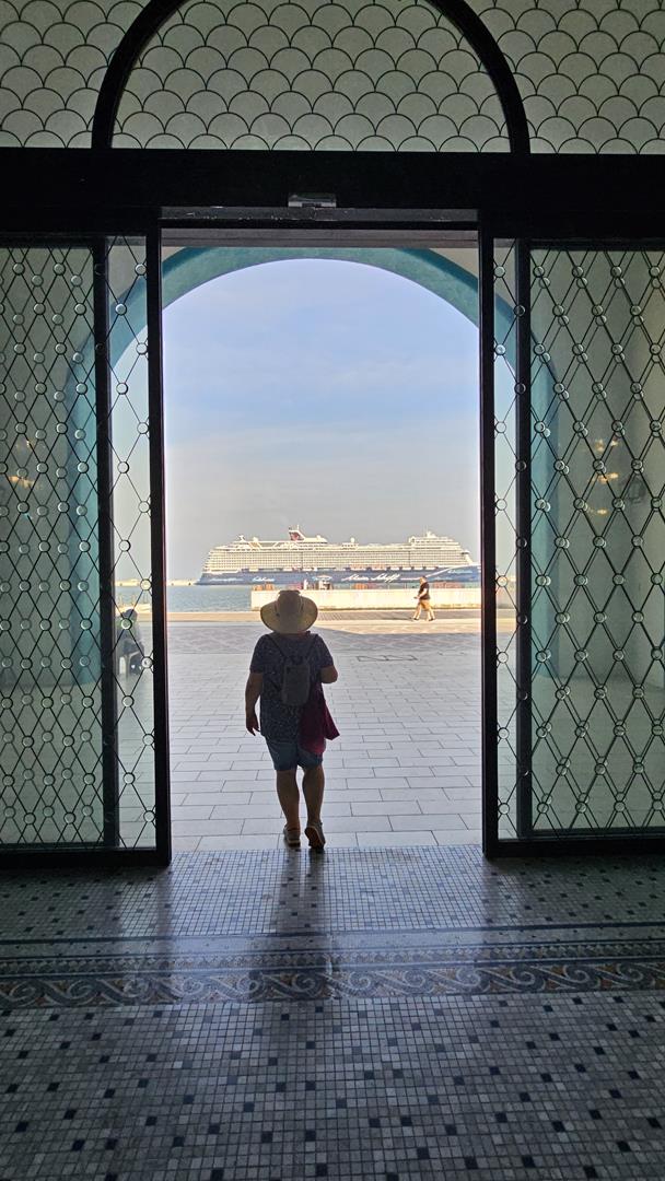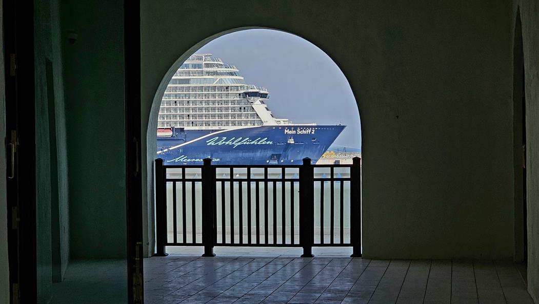 Wir schlendern durch das malerische Viertel mit idyllischen Kopfsteinpflasterstraßen und pastellfarbenen Gebäuden. Gegenüber der Promenade liegt die Mein Schiff 2, von hier haben wir einen klasse Blick auf unser Schiff.