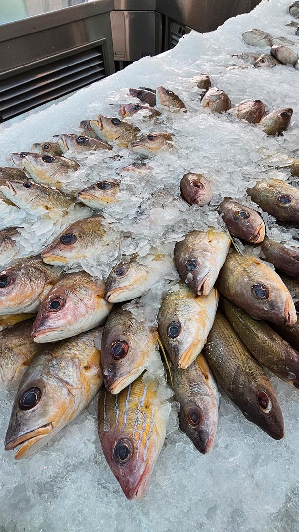 An den runden Verkaufsständen kann man allen möglichen Fisch kaufen. Es gibt Muscheln, Thunfisch, Seebarsch, Krabben, Tintenfische, Austern und Miesmuscheln und vieles mehr. Besonders interessant: Man kann sich einen Fisch aussuchen und dieser wird im dazu gehörenden Restaurant frisch zubereitet.