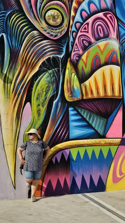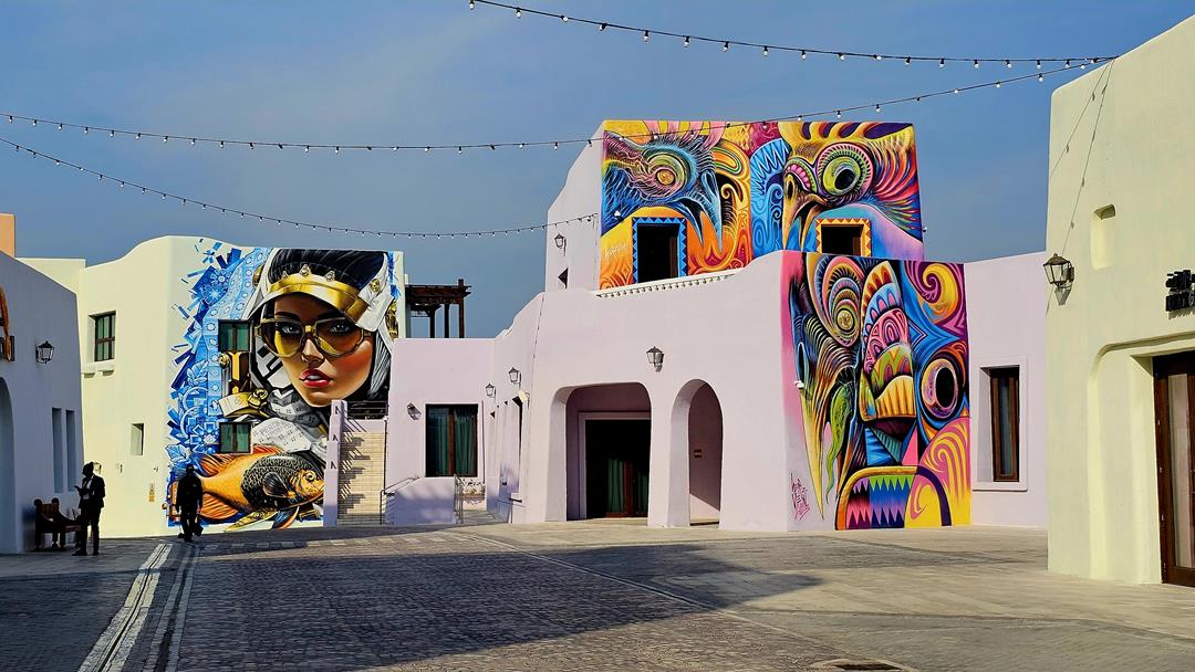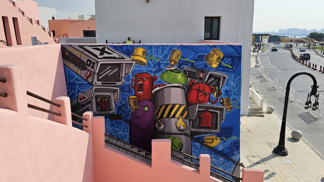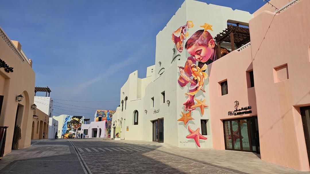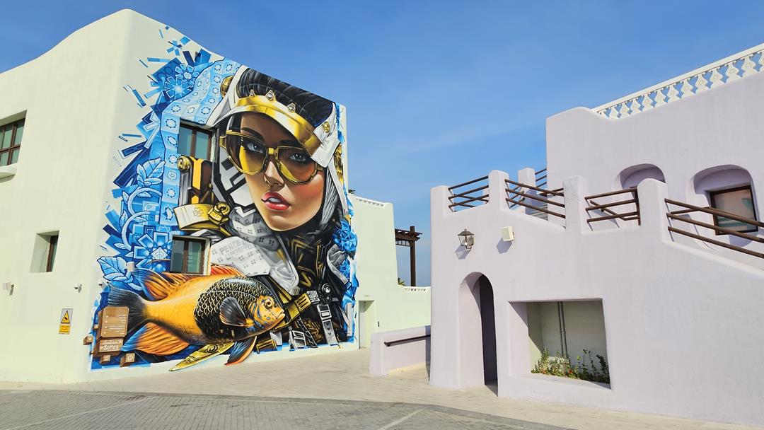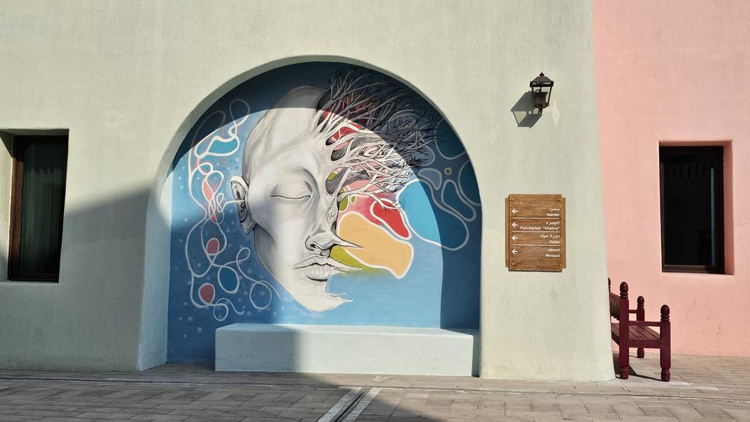 Überall entdecken wir wunderschöne, künstlerische Street Art-Graffiti. Die Stadt Doha hat dafür extra namhafte Künstler engagiert. Überhaupt legt Doha viel Wert auf Kunst und Kultur, mit Museen, Gemälden, Skulpturen und Monumenten. Und hier im Mina District halt mit großartiger Street Art!
