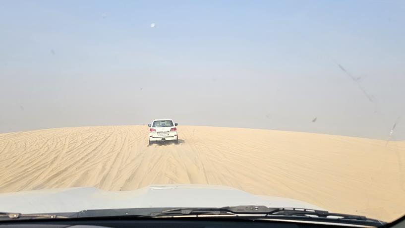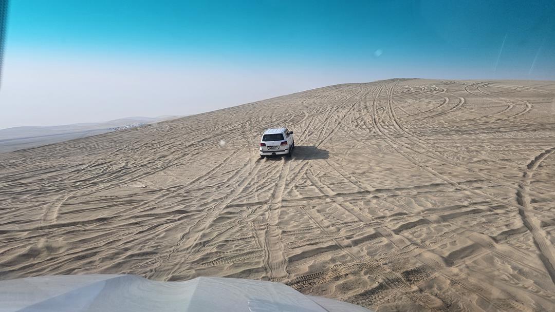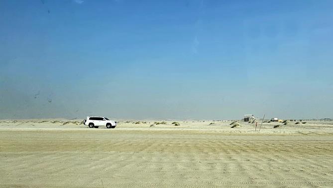 Weiter geht die Fahrt durch die Wüste bis wir das innere Binnenmeer „Inland Sea“ bei Khor Al Adaid erreichen. Khor Al Adaid ist von der UNESCO als größtes Naturschutzgebiet von Katar anerkannt worden und ist einer der wenigen Orte in der Welt, an denen das Meer bis in die Wüste reicht. Das Gebiet kann nur durch die Fahrt mit Allrad-Jeeps querfeldein durch die Wüste erreicht werden.