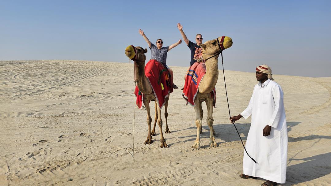 Unser heutiger Tag: In einer abenteuerlichen Fahrt geht’s mit dem Jeep durch die Wüste Katars und wir reiten auf einem Kamel 🙂 Dann erkunden wir auf eigene Faust den Mina Distrikt in der Nähe des Hafens. Abends lassen wir uns bei einer Dhaufahrt von der bunt beleuchteten Skyline Dohas beeindrucken!