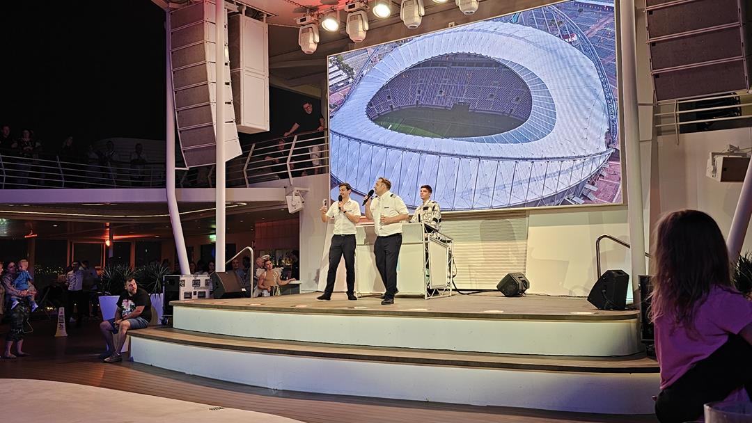 Pünktlich um 22 Uhr heißt es „Leinen los von Doha“. Wir genießen die Ausfahrt vom Pooldeck aus. Ein letzter Blick auf die atemberaubende Skyline von Doha. Dann verschwindet Doha langsam am Horizont und wir nehmen Kurz auf unser nächstes Ziel: Dubai.