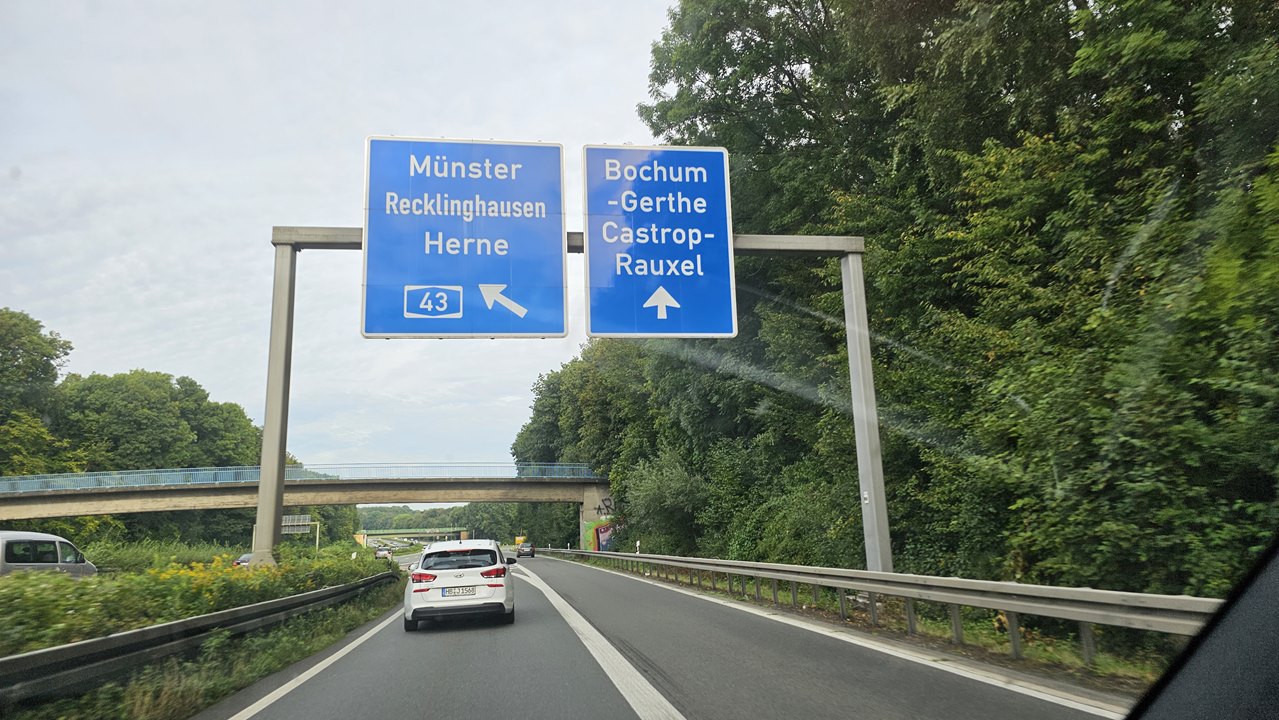 Im Radio hören wir von einem bösen Unfall bei Bremen. Die Autobahn ist komplett gesperrt. Das Navi springt hin und her, mal ist die Ankunftszeit wieder früher, dann wieder später. Gut, dass wir einen Tag früher anreisen. Aber blöd, dass wir so lange Autofahren müssen. Irgendwann lotst uns das Navi von der Autobahn runter und über irrwitzige Umwege über Landstraßen, schafft es aber, den gröbsten Stau zu umfahren. Jetzt springt das Navi auf 14.30 Uhr. Das hört sich wieder besser an 🙂