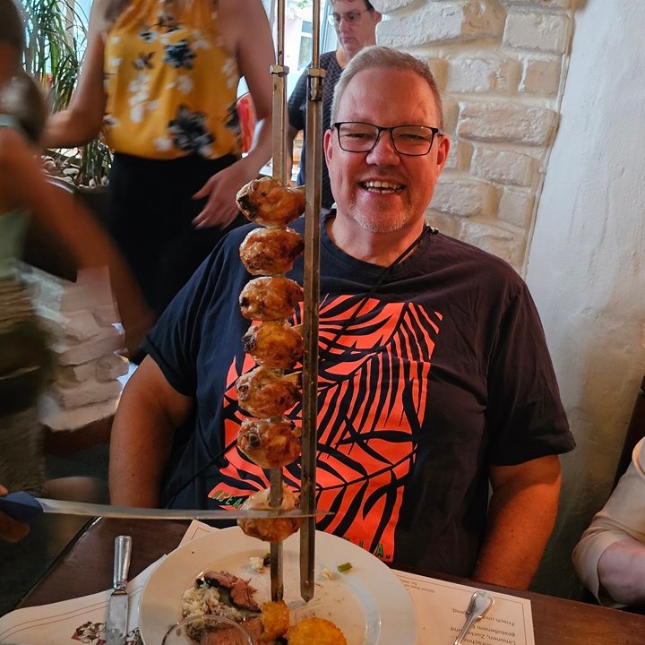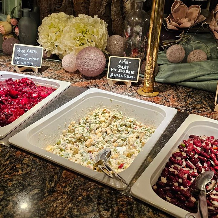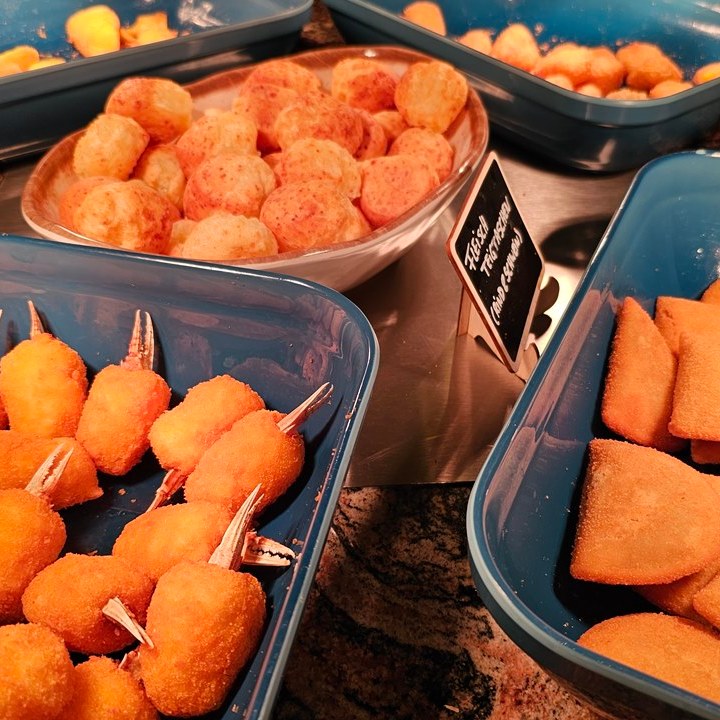 Zuerst bedienen wir uns am Vorspeisen-Buffet mit allerlei Salaten und Gemüse, Serranoschinken, Salami, Chorizo, Scampis und Lachs bis hin zu Oliven und Obst. Wir versuchen uns hier zurück zu halten, denn wir warten auf die Hauptspeise vom Rodizio.