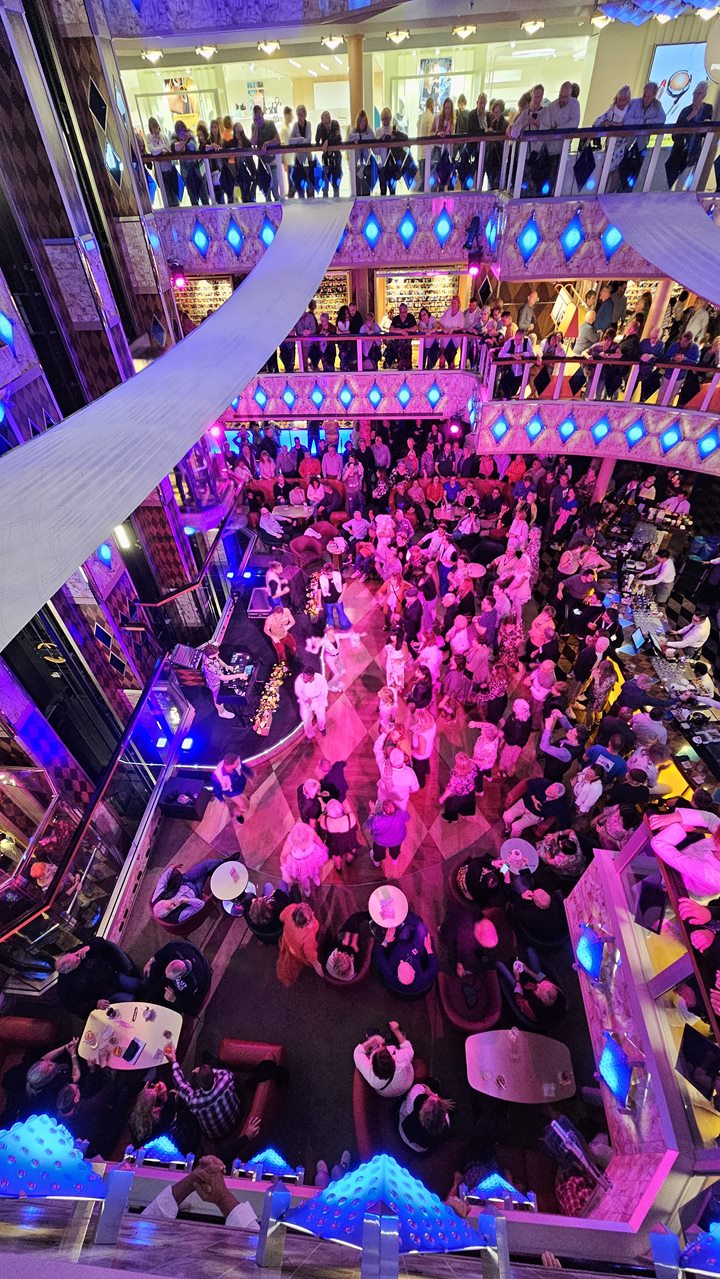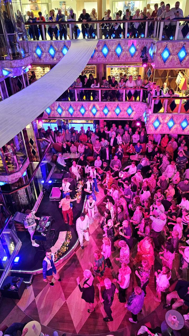 Sowas haben wir noch nicht gesehen! Die Stimmung ist unglaublich, die Menschen singen und tanzen, sogar hier auf den höheren Decks ist die Stimmung ausgelassen. Auch wir feiern und tanzen die Choreo, die das Entertainment-Team vortanzt. Und singen lauthals mit! So ein geniales Event! Costa versteht sich wirklich auf Entertainment! Das nennen wir mal gelungene Animation. Genial!