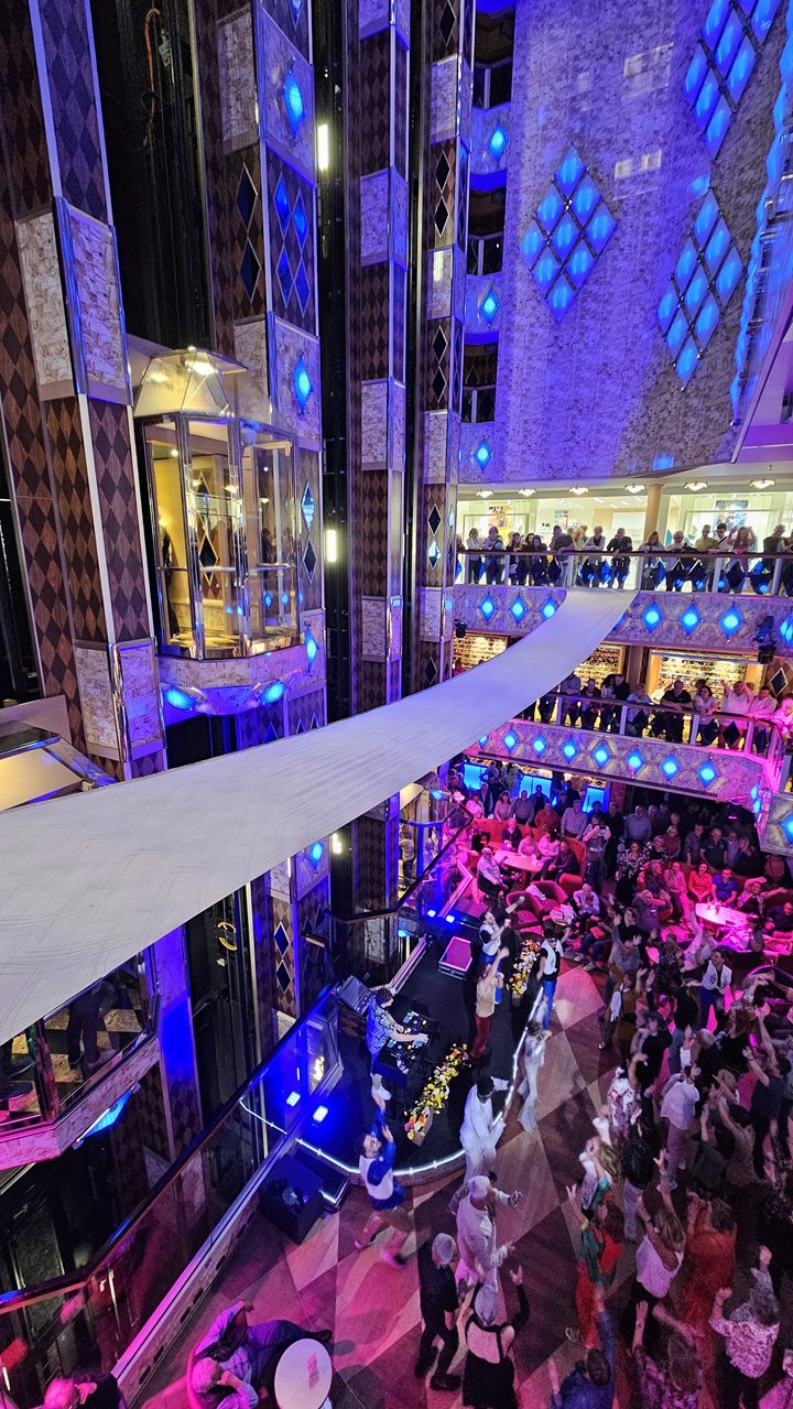 Bevor wir ins Theater gehen, schauen wir in der Diamanti Bar vorbei. Das ist Lobby und Bar gleichzeitig, erstreckt sich über drei Decks und hat noch viel mehr Bling Bling, als alle anderen Bars und Restaurants. Unglaublich viel Bling Bling 🙂