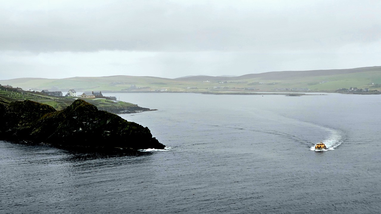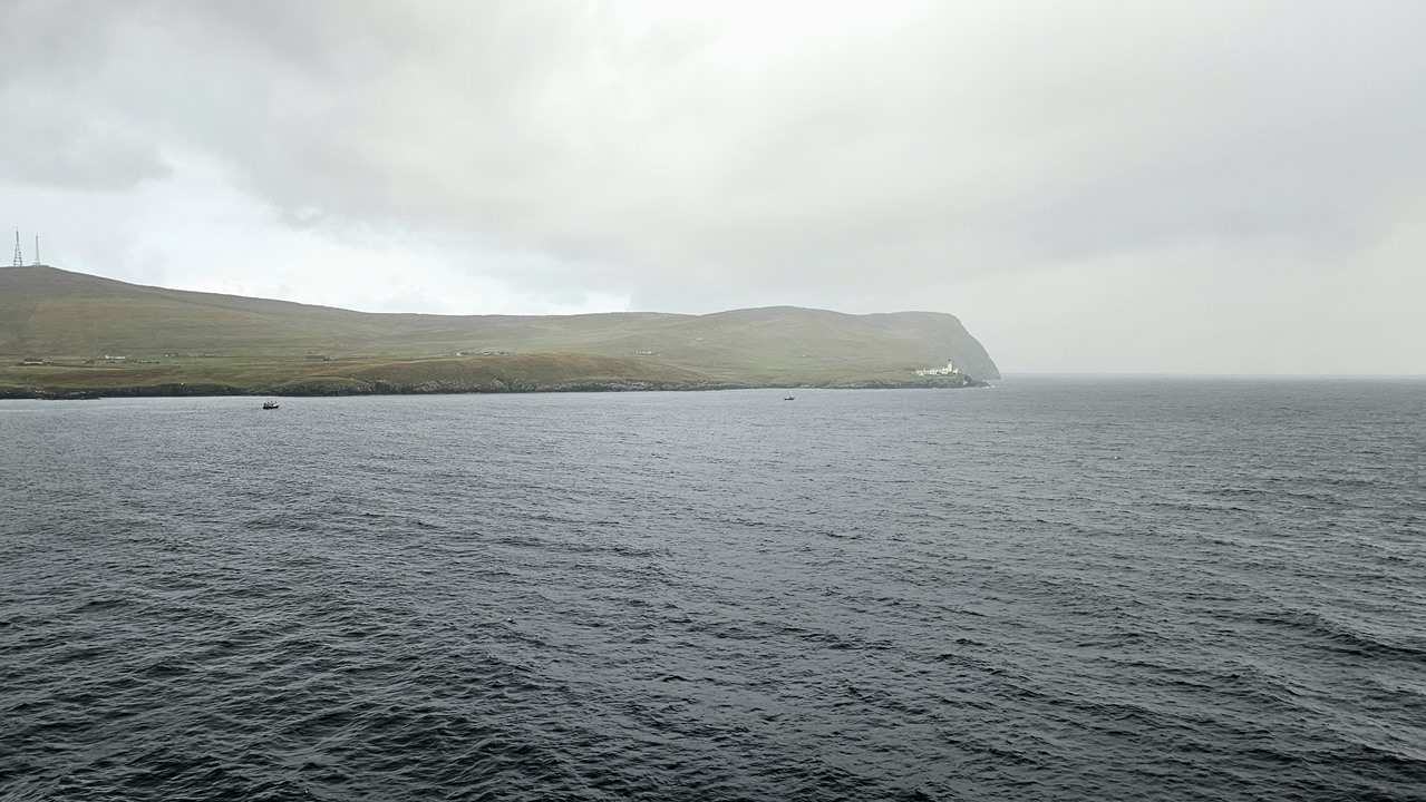 Für heute haben wir im Vorfeld eine 4-stündige Inselrundfahrt bei Lara Thomason von Shetland Tourguide gebucht. Diese startet um 13 Uhr. Eigentlich wollten wir schon am Vormittag nach Lerwick tendern und das kleine Städtchen auf eigene Faust erkunden. Bei diesem grauen Wetter schieben wir das ein wenig nach hinten und fahren lieber etwas später rüber.