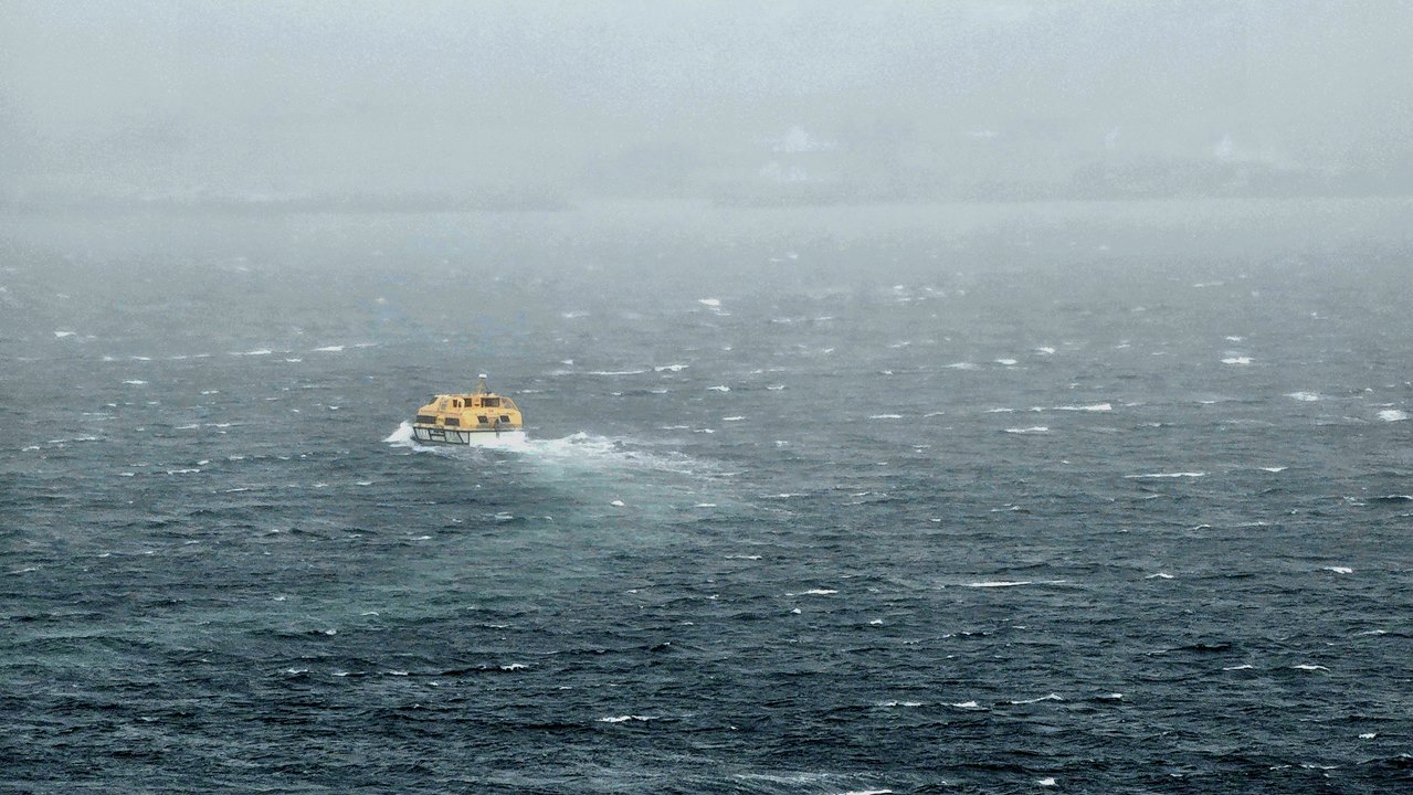 Gegen halb fünf legen wir ab, beziehungsweise wir fahren los. Scheinbar hat man alle Passagiere eingesammelt. Einige haben es ja früh am Morgen an Land geschafft, noch bevor das Wetter zu schlimm wurde. Später während der Reise treffen wir Leute, die wahre Horror-Geschichten von der Tender-Rückfahrt berichten: Meterhohe Wellen, Wind, Sturm, ein so stark schwankendes Boot, dass das Aussteigen fast nicht möglich war. Nein, das brauch man wirklich nicht.