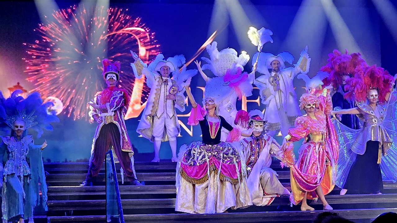 Weiter geht’s um 21.00 Uhr im Theater, die Show heißt „Venezia Carneval“ und hält was sie verspricht. Bunt, pompös, mit herrlichen Kostümen präsentiert das Showensemble eine bildgewaltige und musikalisch hervorragende Show. Eine wirklich tolle Show!