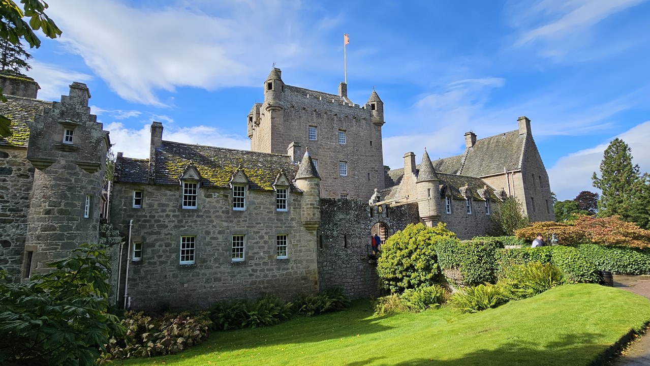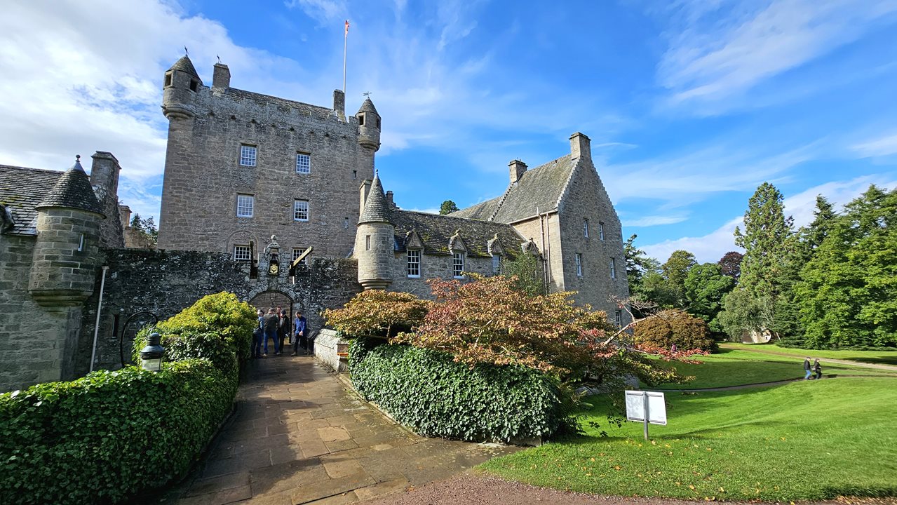 Und nun erreichen wir ein echtes Highlight auf diesem Ausflug: Die stolze Trutzburg Cawdor Castle nahe Inverness. Die Burg ist umgeben von wunderbaren Gärten – und als Besonderheit schützt sie tief in ihrem Inneren eine alte Pflanze. Aber dazu gleich mehr.