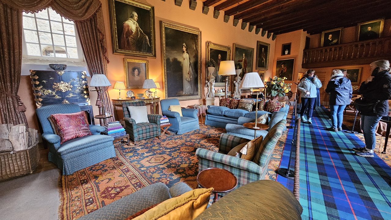 Am Schlosseingang erhalten wir einen Audioguide, anschließend begeben wir uns auf den Rundweg durch das Schloss. Wir sind überrascht über die geschmackvolle Einrichtung der Innenräume, selbst auf den Treppen liegen Teppiche mit den Farben des Clans. In den Räumen wird allerhand wertvolles Mobiliar ausgestellt sowie Gemälde aus allen Epochen. Die Tour im Inneren von Cawdor Castle ist wirklich sehenswert.