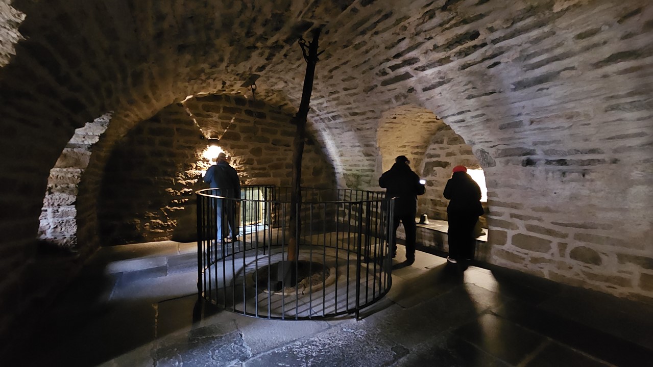 Und hier die Legende rund um Cawdor Castle: William, Thane of Cawdor und Erbauer des Castles träumte, dass er ein Maultier mit Gold beladen solle. An der Stelle, wo dieses Tier sich dann zum Schlafen niederlegte, sollte eine Burg errichtet werden. Das Tier legte sich an einem Stechpalmenbusch nieder. Genau an dieser Stelle ließ William einen Turm um den Ilexbusch errichten. Die legendäre Stechpalme steht immer noch im Keller des Turmhauses, geschützt durch ein Geländer. Natürlich kommen wir bei der Schloss-Tour auch im Keller bei dieser Stechpalme vorbei :-)-