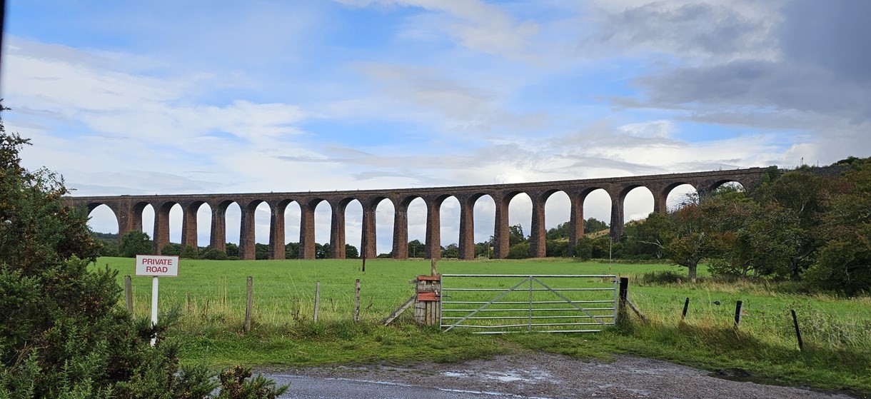 Nein, diese tolle Brücke ist der Culloden Viadukt. Er wurde 1893-1898 erbaut und ist der längste Eisenbahnviadukt Schottlands. Der Viadukt ist 39 m hoch und hat 28 Steinbögen von je 15,24 m Weite und einen Hauptbogen über dem Fluss von 30,48 m Weite. Bereits 1971 wurde der Culloden Viadukt in die schottischen Denkmallisten in der höchsten Kategorie A aufgenommen.