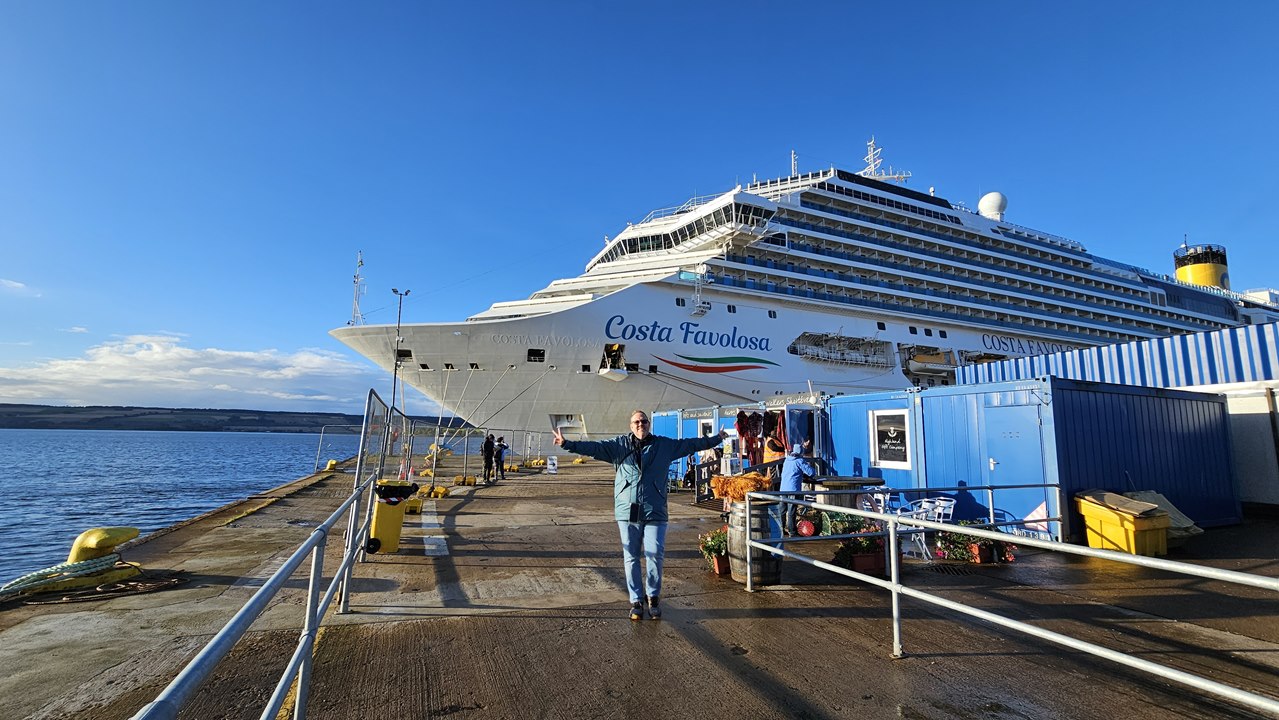 Kurz nach 8:00 Uhr verlassen wir schon die Costa Favolosa. Die Sonne lacht, es verspricht ein schöner Tag zu werden. Der Weg zum Treffpunkt ist nicht weit und leicht zu finden. Key, unser Tourguide, ist schon da und „hakt“ seine Tourgäste ab. Er spricht sehr gut deutsch und bereits jetzt erzählt er kurzweilige Geschichten rund um Schottland.