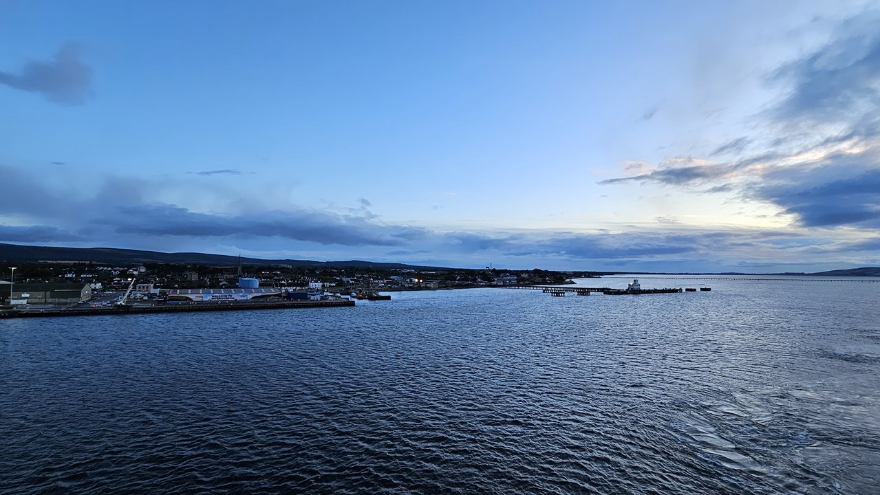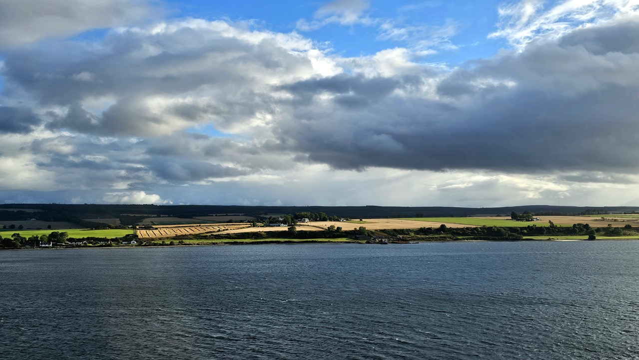 Pünktlich um 18 Uhr legen wir ab. Die Sonne kommt wieder hinter den Wolken hervor und versüßt den Abschied von Invergordon und den schottischen Highlands.