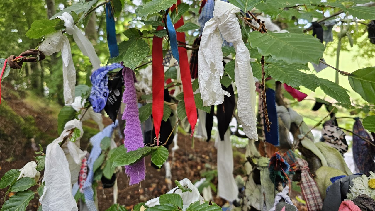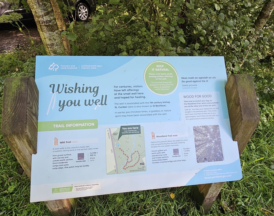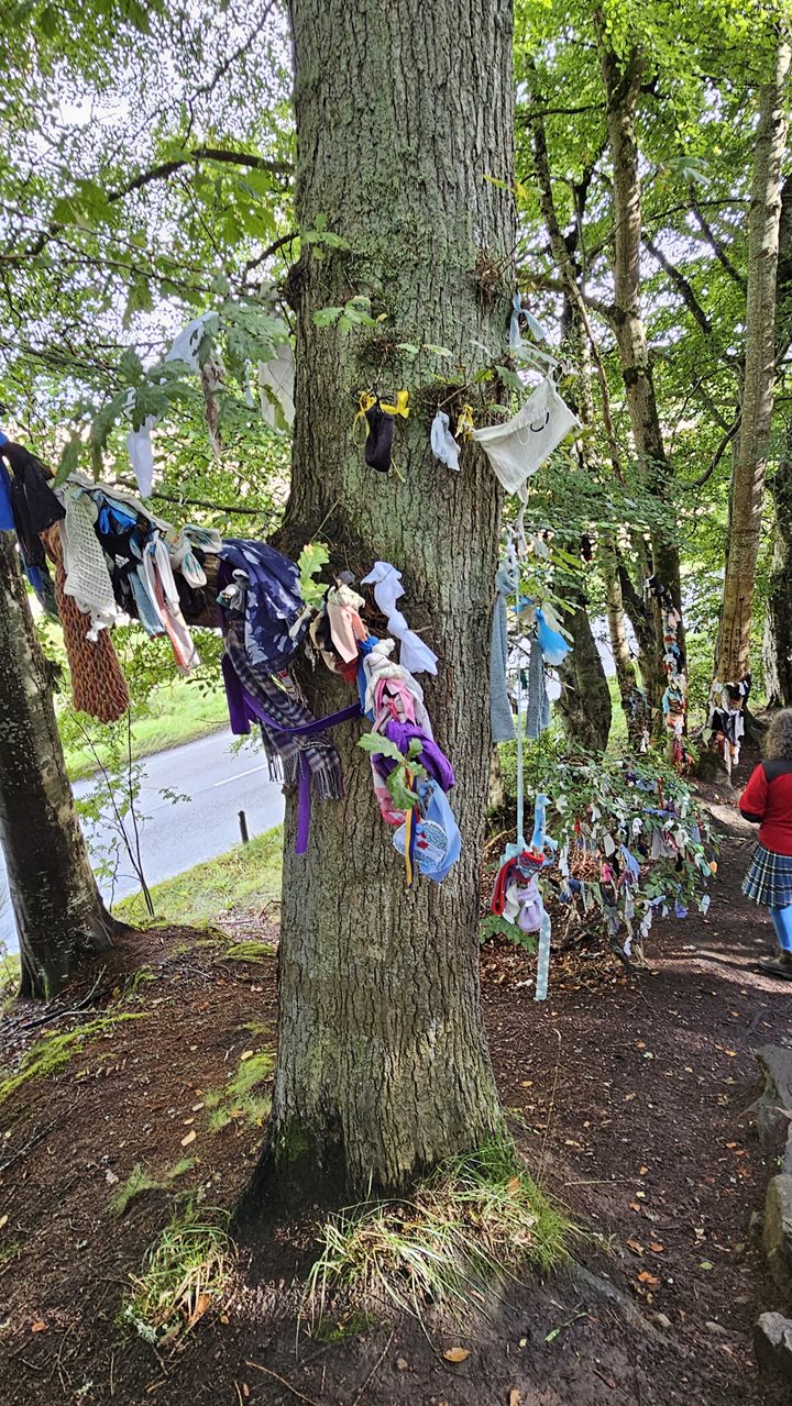 Nach 20 Minuten Fahrt ist unser nächster Stopp bei einem ganz besonderen Ort: Einem Clootie Well. Ein Clootie Well oder auch Cloughtie Well – übersetzt „Lappen- oder Lumpenquelle“ – ist ein volksreligiöser Kultort in den keltischen Gebieten der Britischen Inseln.