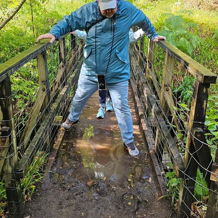 Die Wanderung entwickelt sich zwischendurch zu einem Abenteuer 🙂 Immer wieder hüpfen und springen wir um große Pfützen herum. Astrid hat sich die Hose hochgekrempelt um den Matschspritzern zu entgehen. Und manchmal müssen wir sogar klettern 🙂