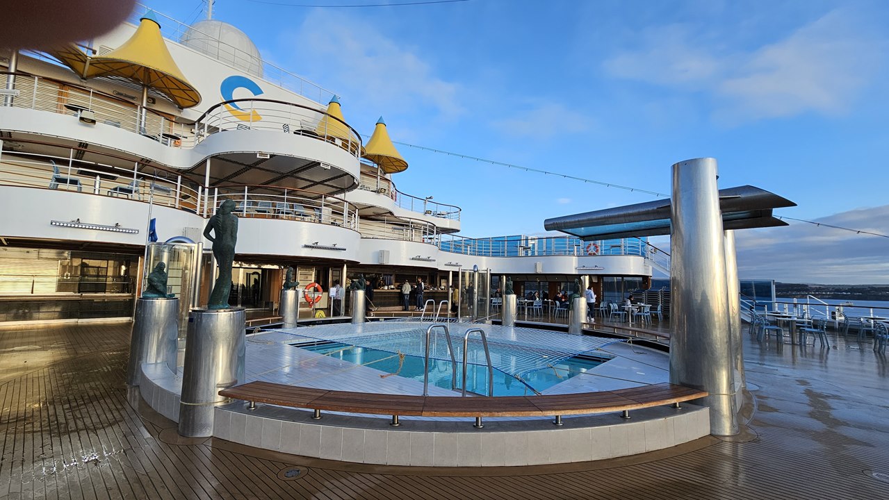 Die Abfahrt von South Queensferry verfolgen wir entspannt vom Pooldeck aus. Tschüss Edinburgh, wir kommen auf jeden Fall wieder!